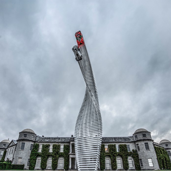 İngiltere’de her yıl düzenlenen Goodwood Festival of Speed’in bu yılki gözdesi Mazda’nın 40 metre uzunluğundaki heykeli oldu. Bükümlü yolda göğe doğru yarışan iki Mazda markalı otomobil etkinliğin girişinde otomobilseverleri karşılıyor.